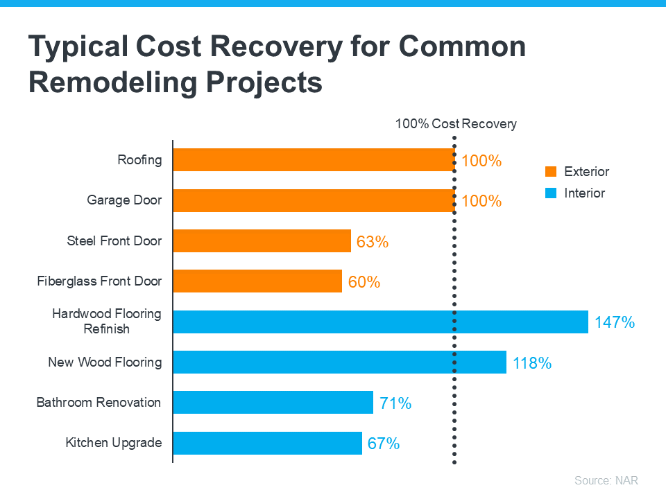 The 2022 Remodeling Impact Report from the National Association of Realtors (NAR) highlights popular home improvements and what sort of return they bring for the investment (see graph below):